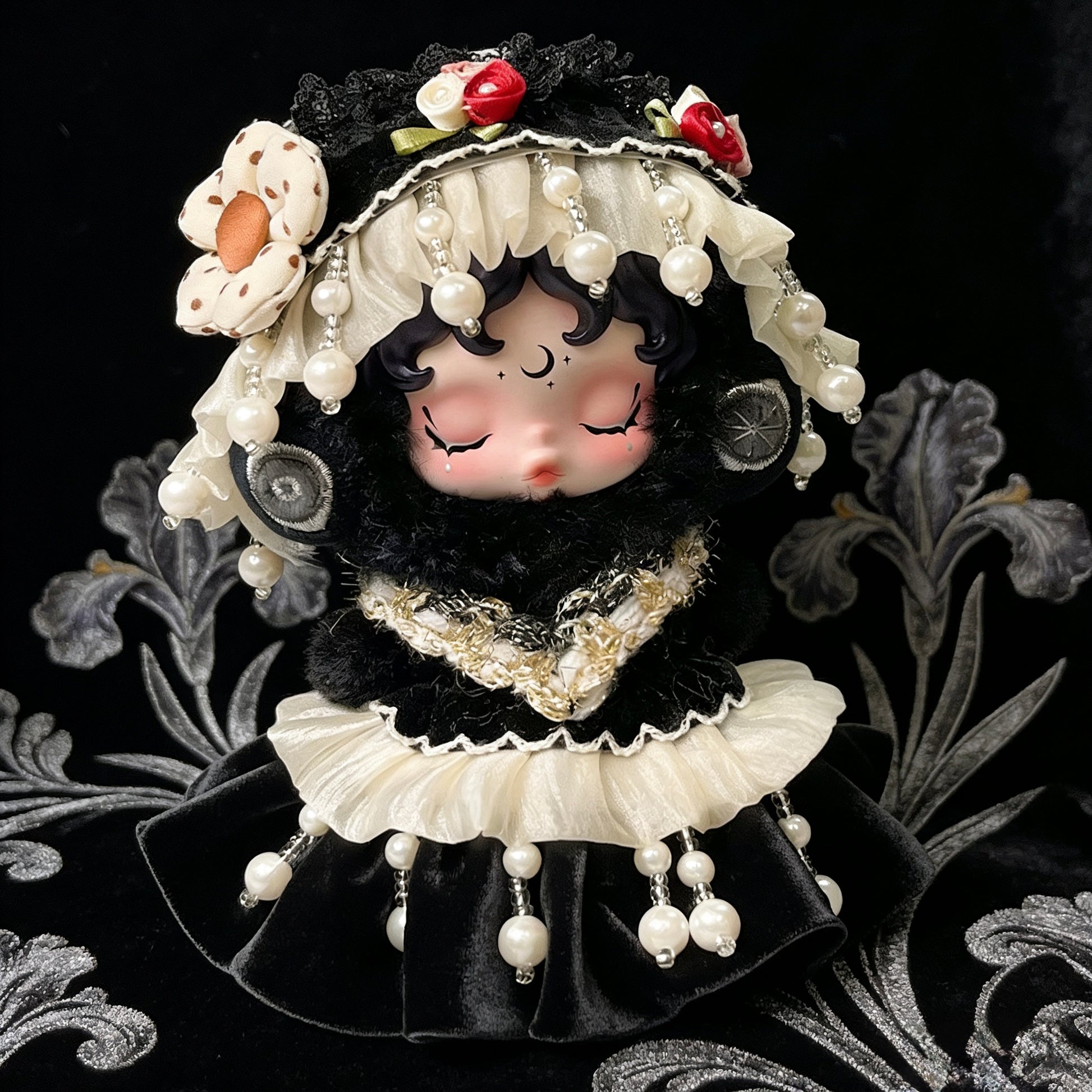 Fluffy textures pair with ornate trims to create a decadent, noble silhouette—perfect for dolls with a mysterious or aristocratic charm.
